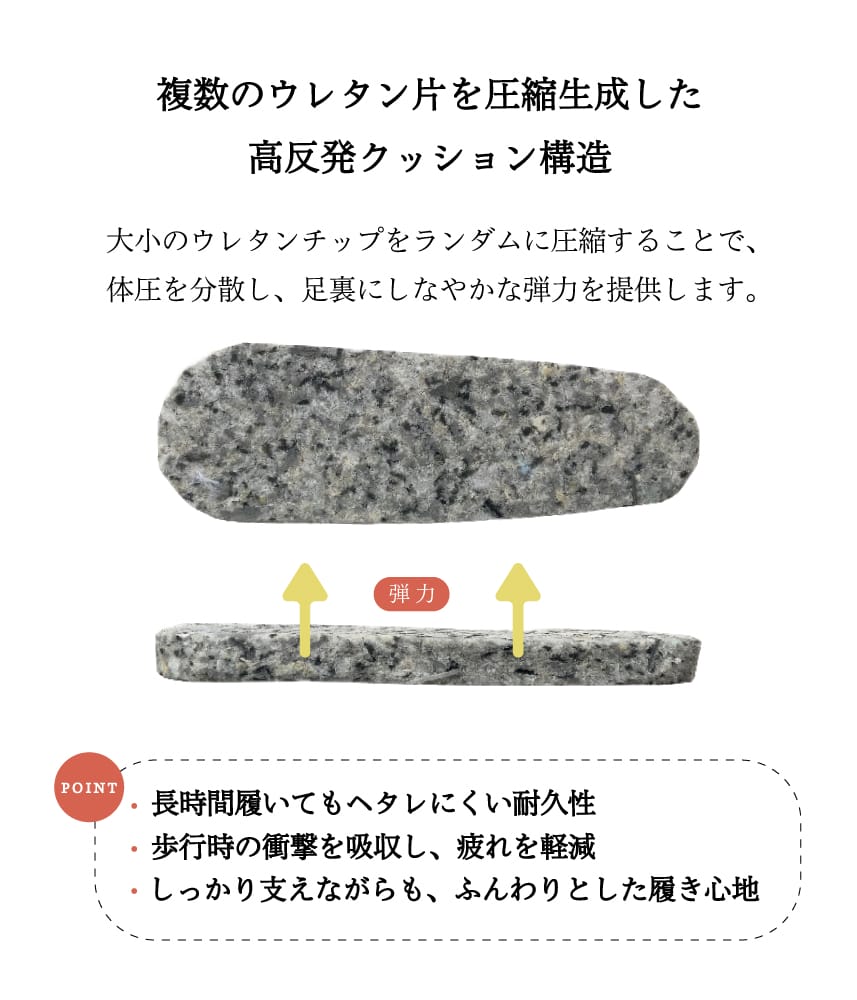 高反発のクッションが足裏に心地よい弾力を与えてくれます。