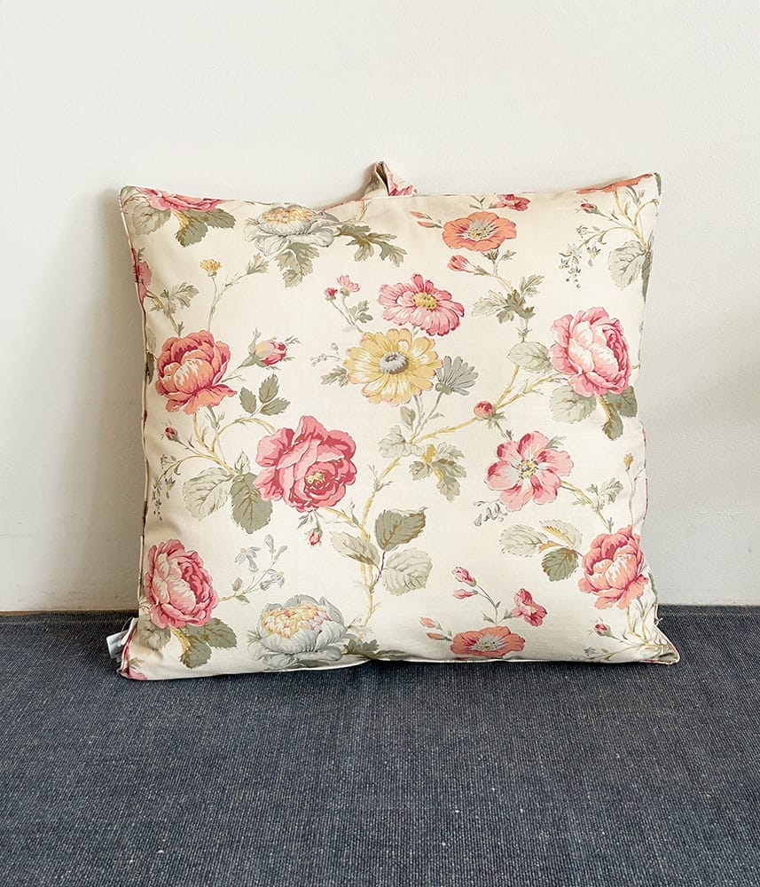 イギリスから直輸入の花柄リネン&コットン生地で製作したフロアークッション。