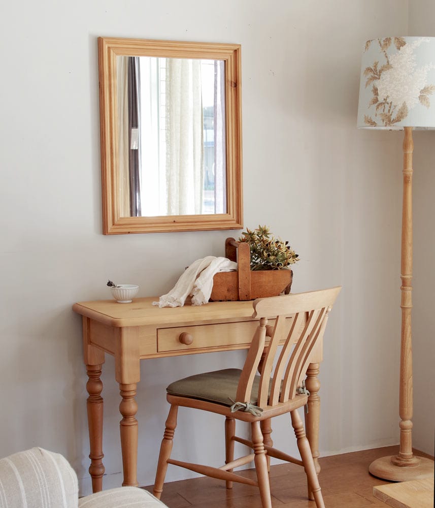 寒い地域でゆっくり育った良質のパイン材を使用したミラー。場所をとらないサイズで、玄関や寝室で活躍します。