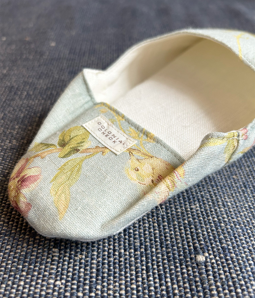 かかとを踏んで気軽に履けるバブーシュスタイルに、