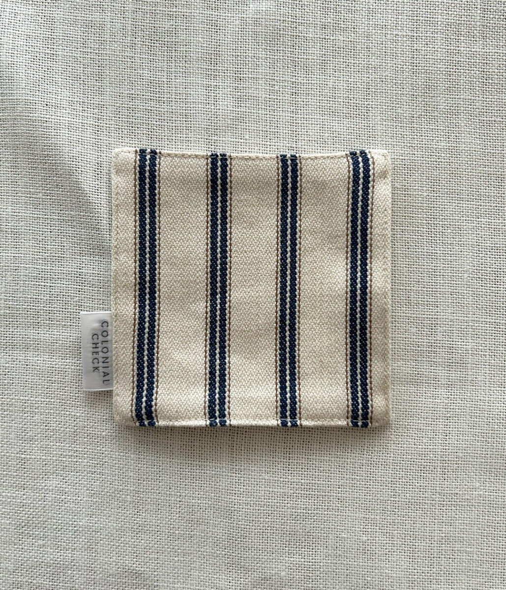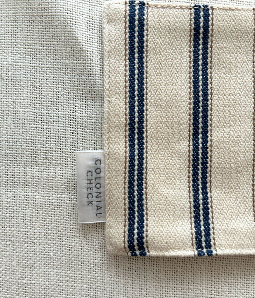フラックスベージュにネイビーのストライプが入ったトラッドなデザイン。