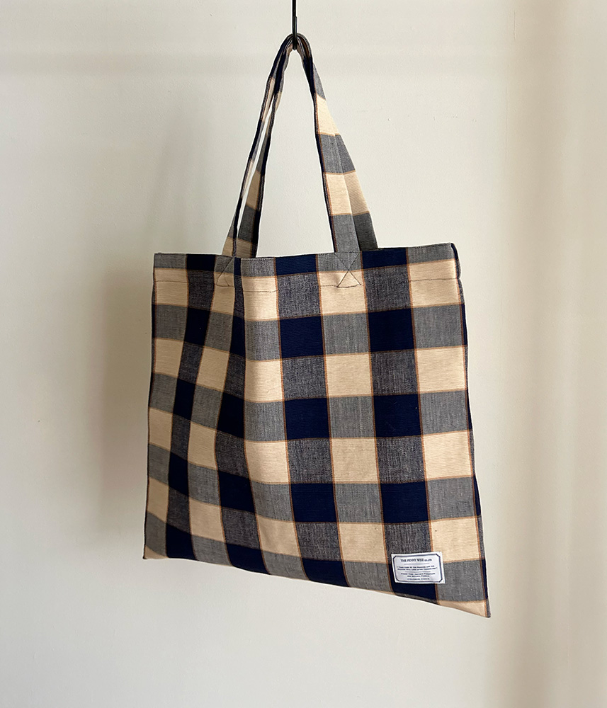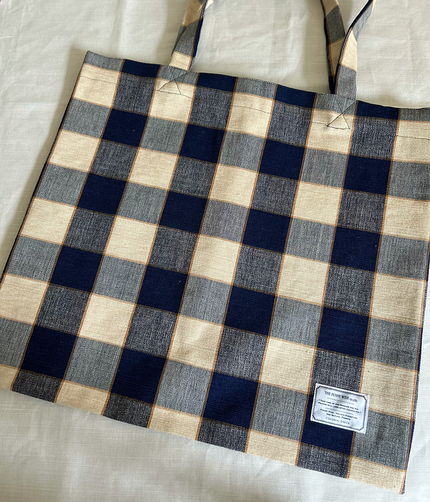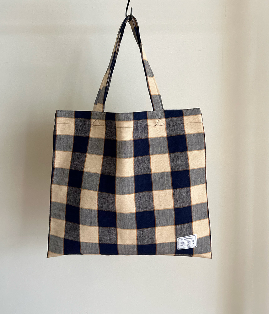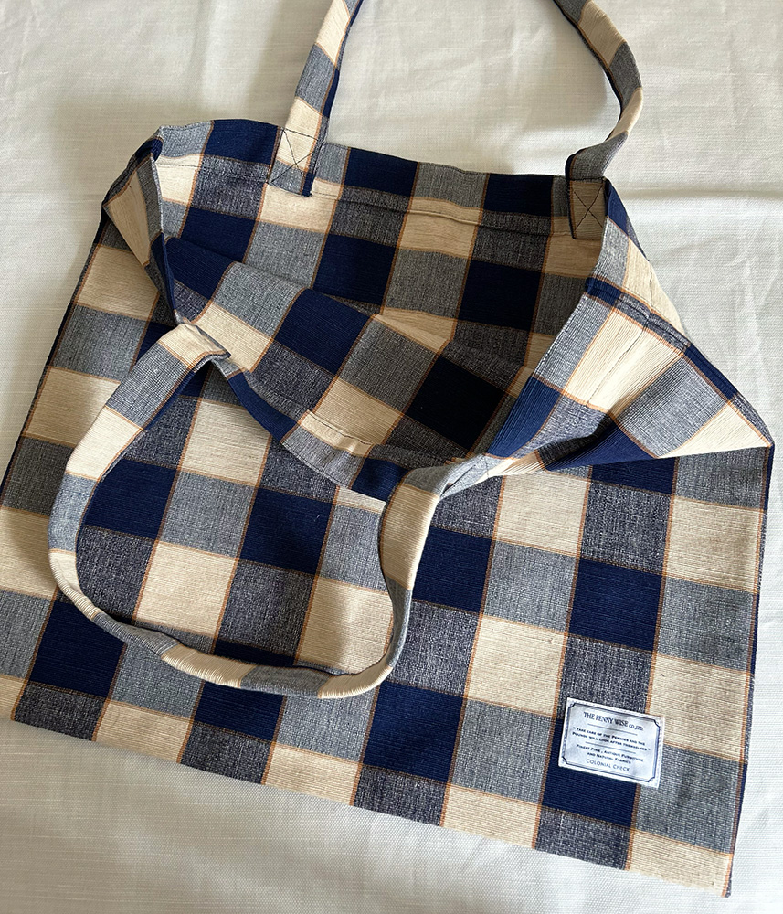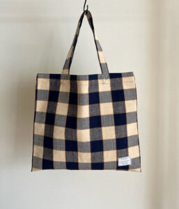 しっかりとしたコットン素材100%生地を使った、大きめトートバッグ。