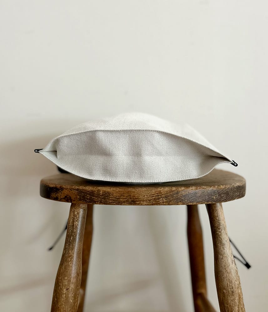 くすみがかったフラックスカラー、LIBECO社のコットンリネン生地を使用。