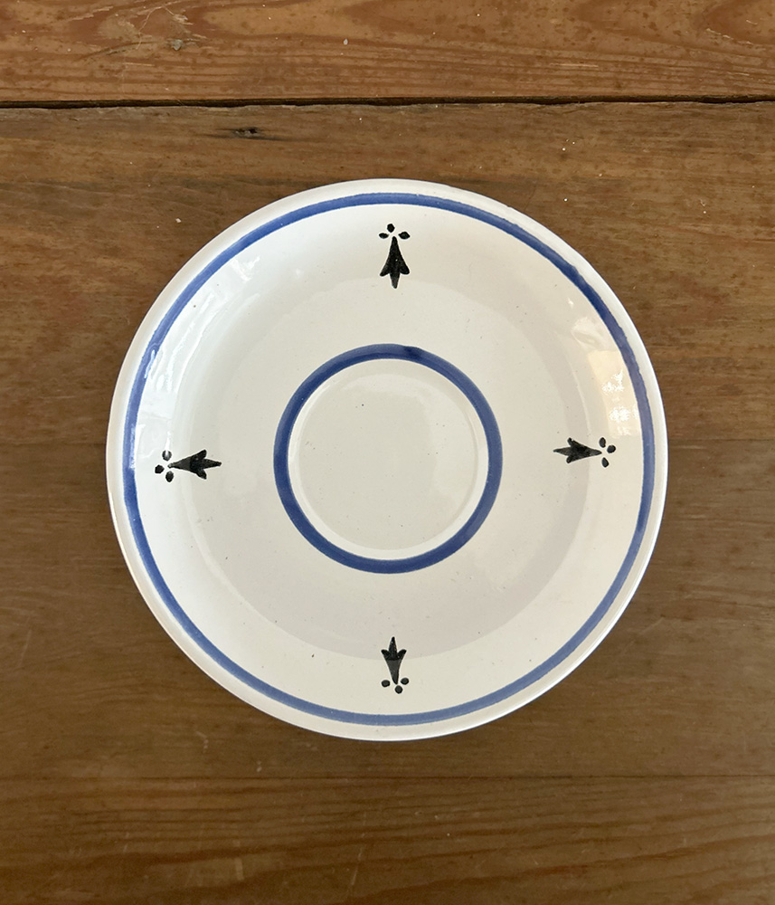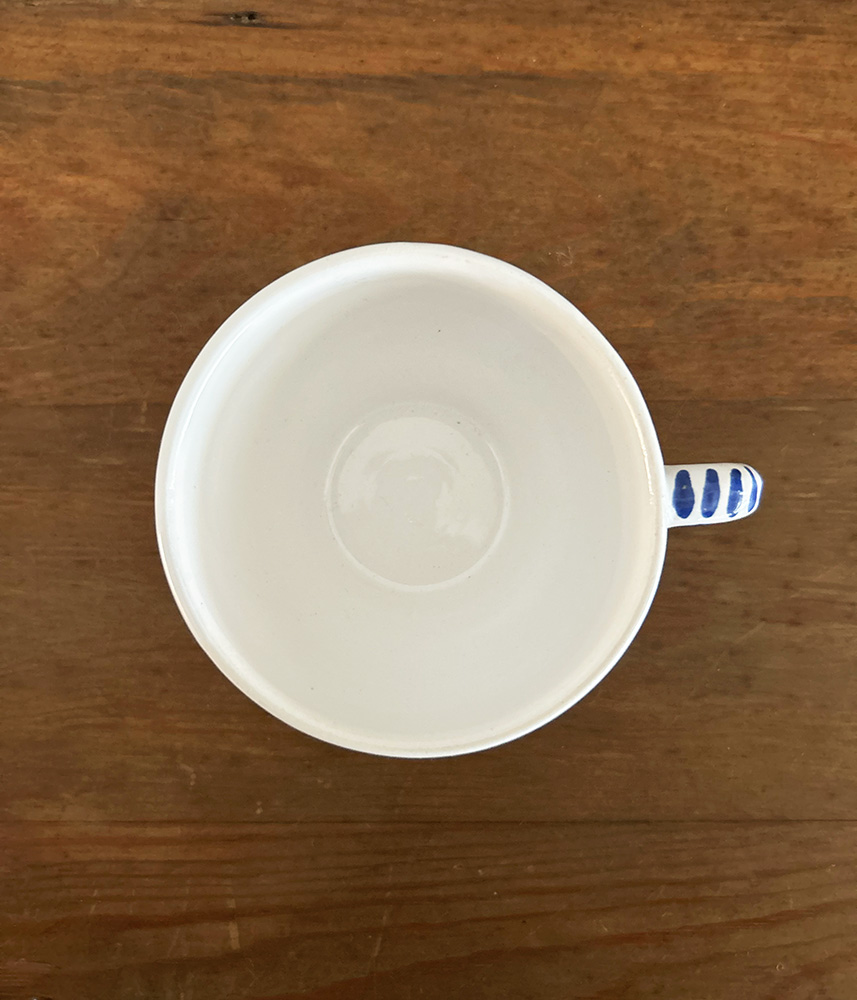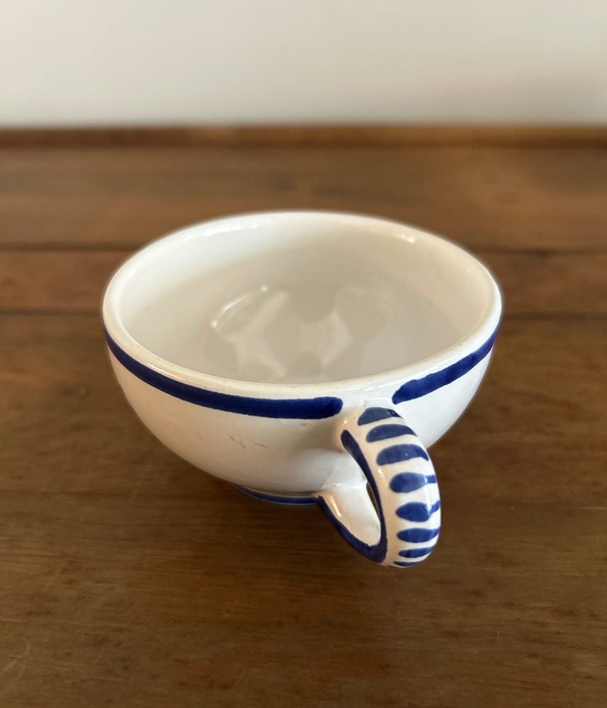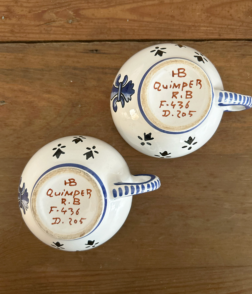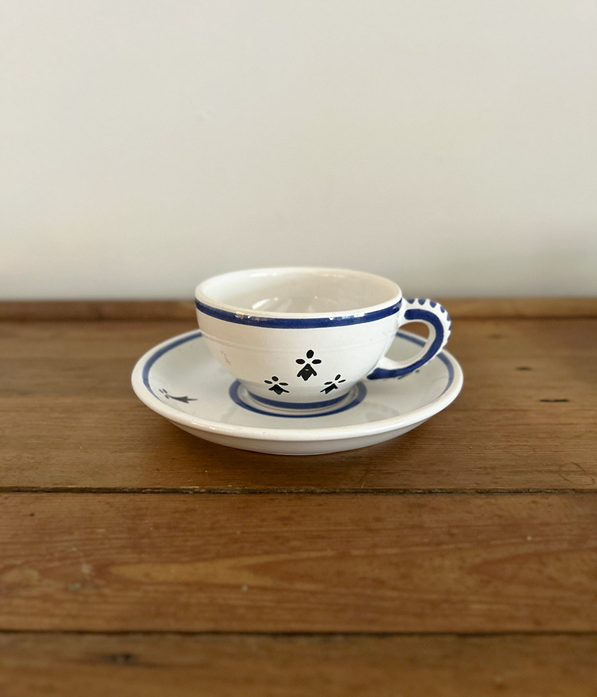 手描きのぬくもりが残る、ブルターニュの陶器・カンペール焼きのカップ&ソーサー。