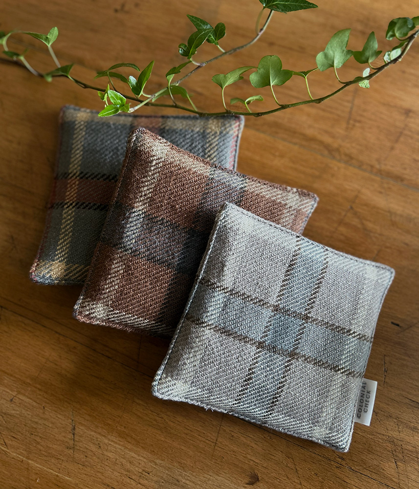 あたたかみのあるチェック柄が、テーブルに季節感と彩りを添えます。程よい厚みの中綿入りで、ポットやティーサーバーの下に敷いて熱をしっかり受け止めます。