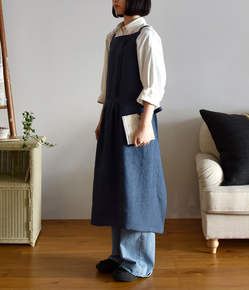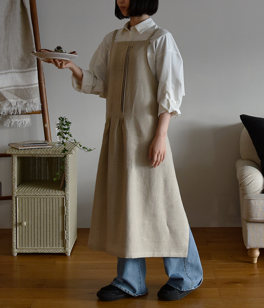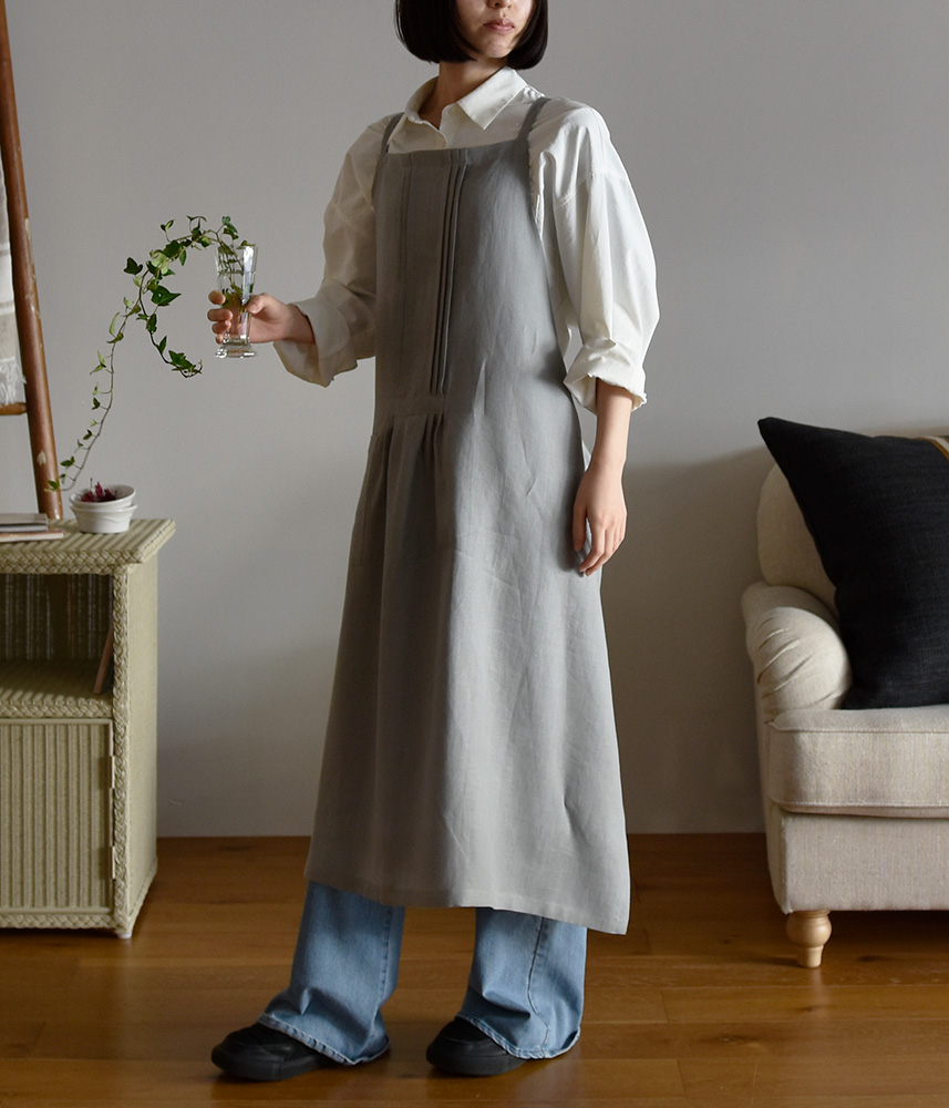 ヨーロッパリネン ピンタックエプロン【3色展開】