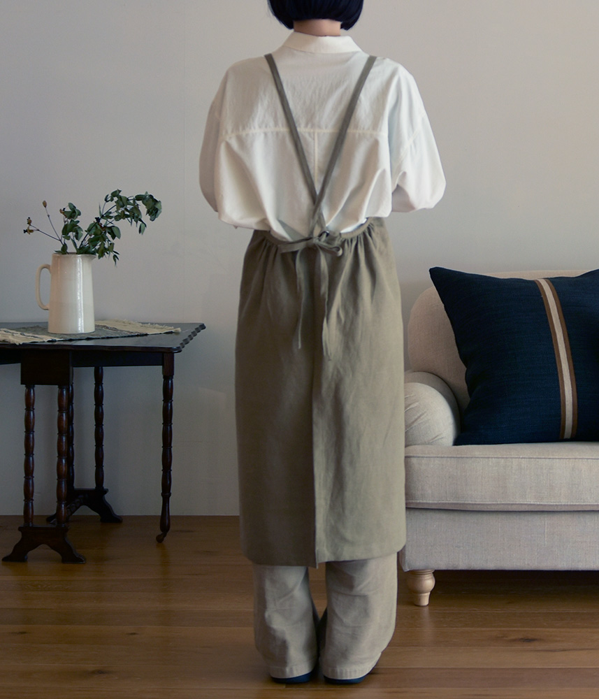 ヨーロッパリネン バックギャザーエプロン【3色展開】