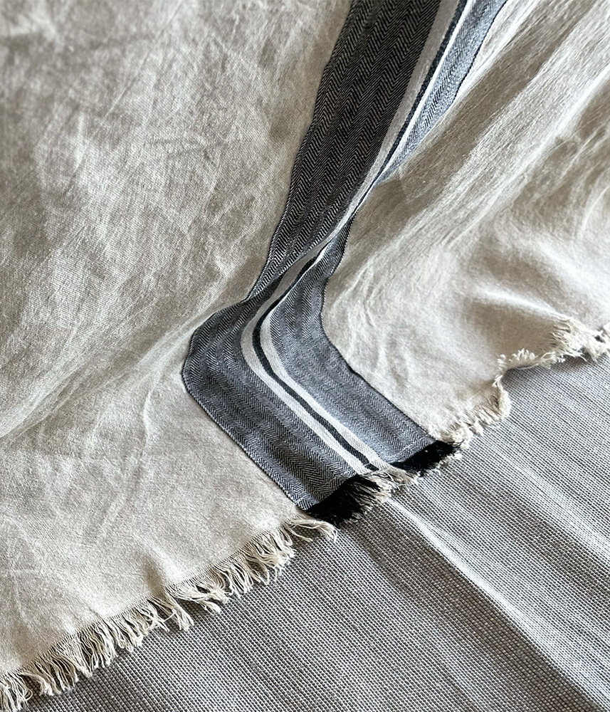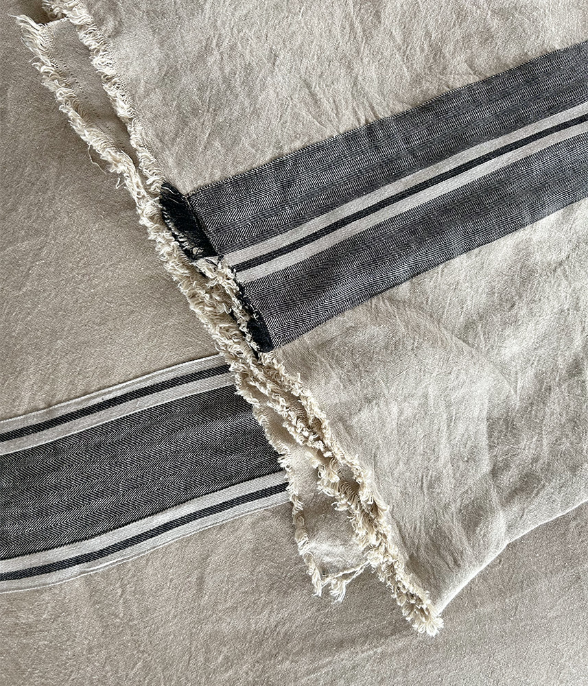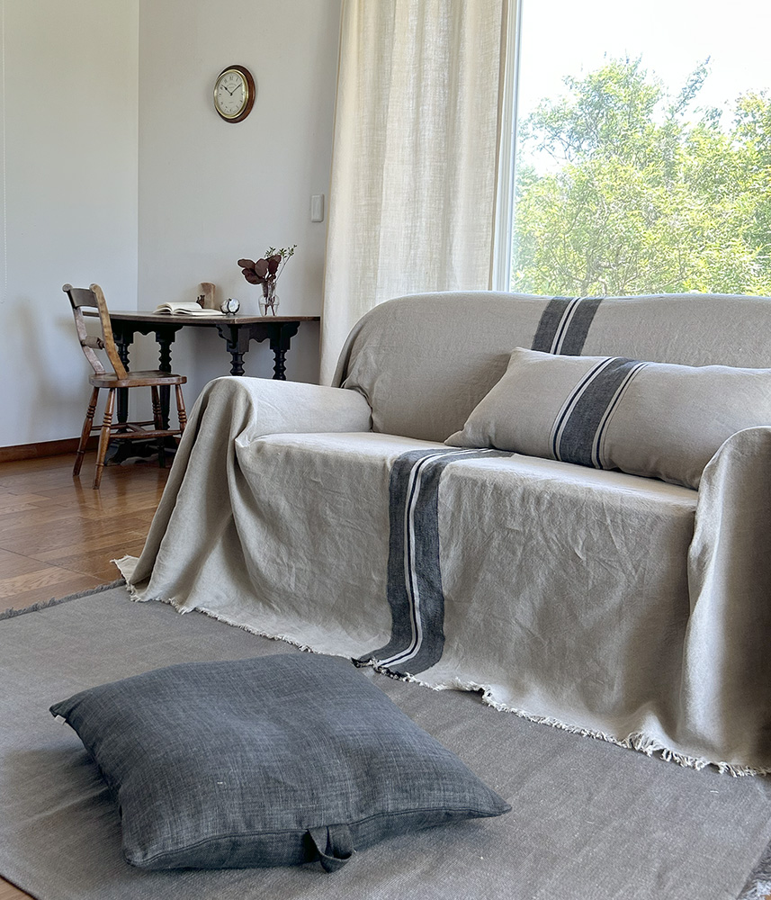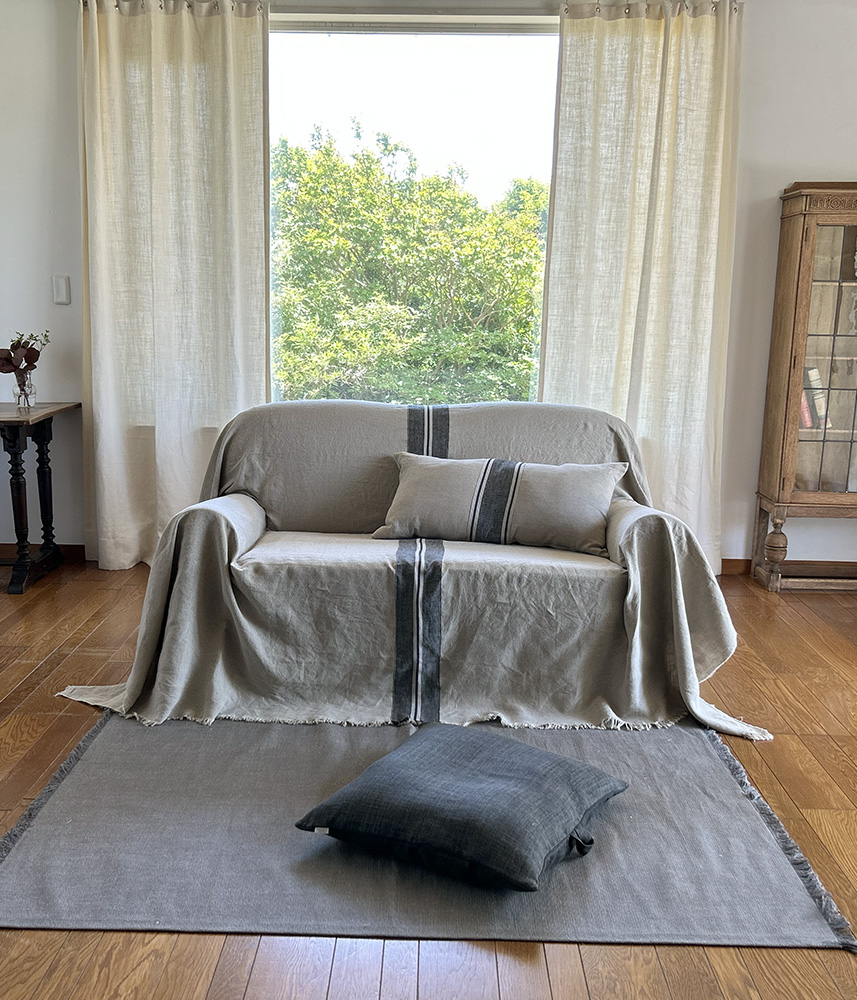 ソファにふわりとかけてルーズカバーとして、テーブルクロス、ピクニックやテラスでのラグ代わりに使ったりと、暮らしの中で自由にお楽しみいただけます。