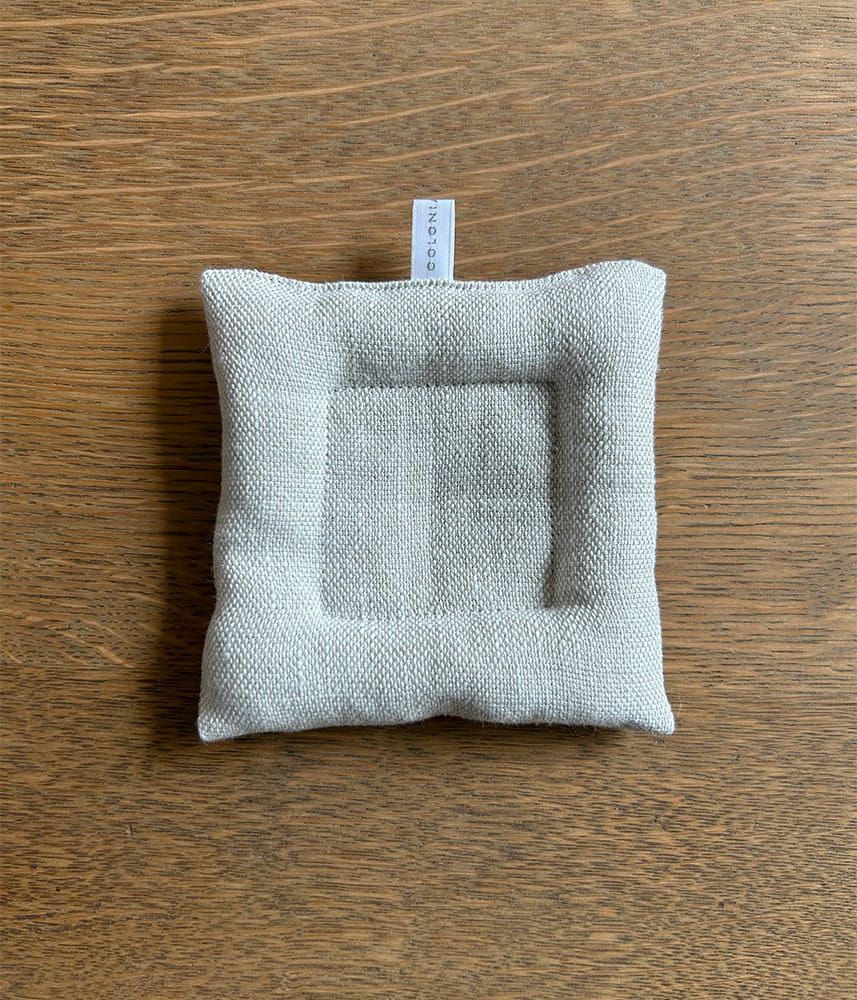 リネンのやさしい風合いに包まれたクッションコースター。