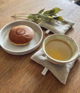 リネンのやさしい風合いに包まれたクッションコースター。