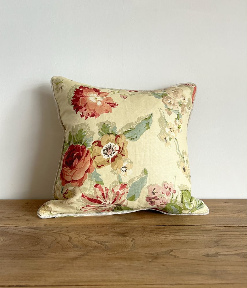 イギリスから直輸入の花柄リネン生地で製作した50㎝×50㎝のクッションカバー。