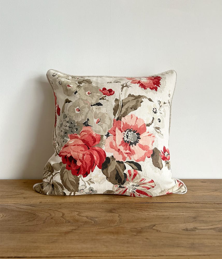 イギリスから直輸入の花柄リネン生地で製作した50㎝×50㎝のクッションカバー。