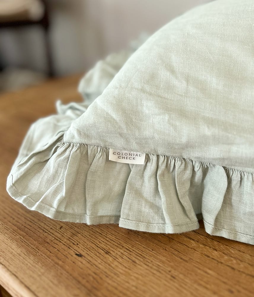 ベルギーLIBECO社製リネン生地を使った上品なフリルクッション
