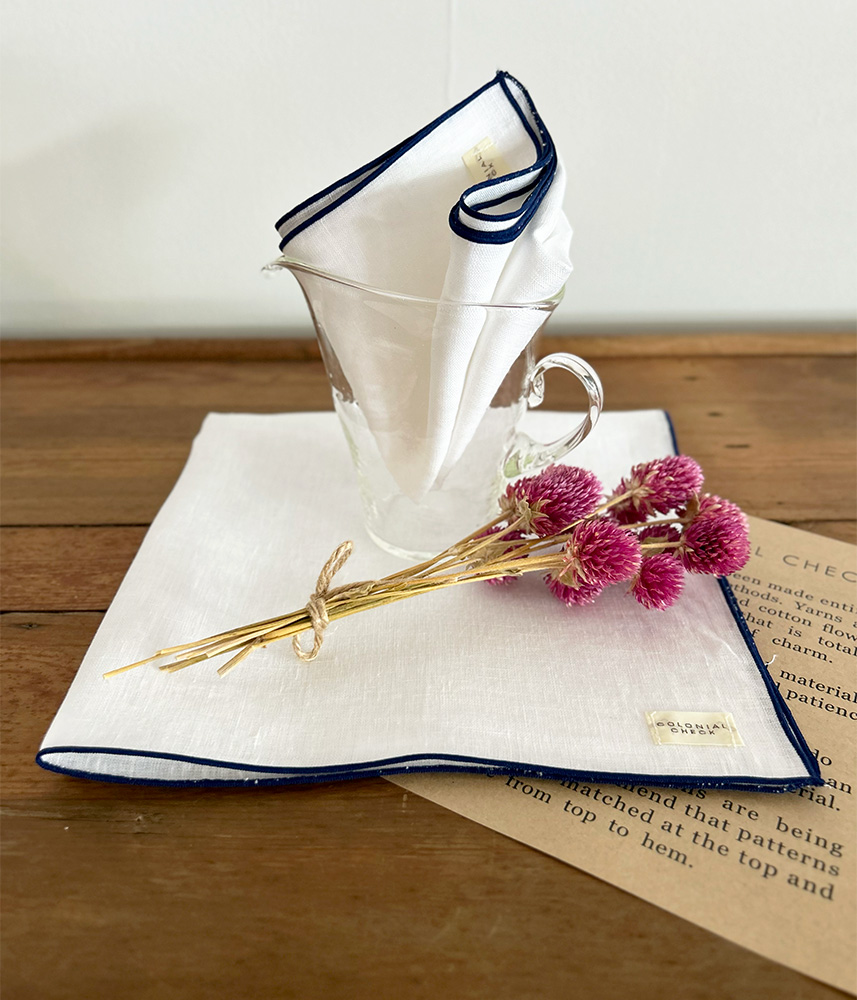 LIBECO テーブルナプキン【ホワイト/ネイビー】