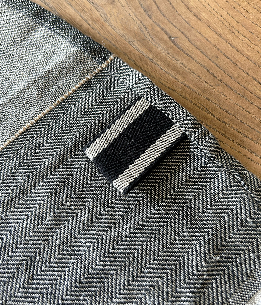 チャコールブラックをベースに、ナチュラルなリネンカラーのラインが映える洗練されたデザイン。落ち着いた存在感で、ウッドやラタンなど自然素材とも相性がよく、空間に凛とした美しさを添えてくれます。