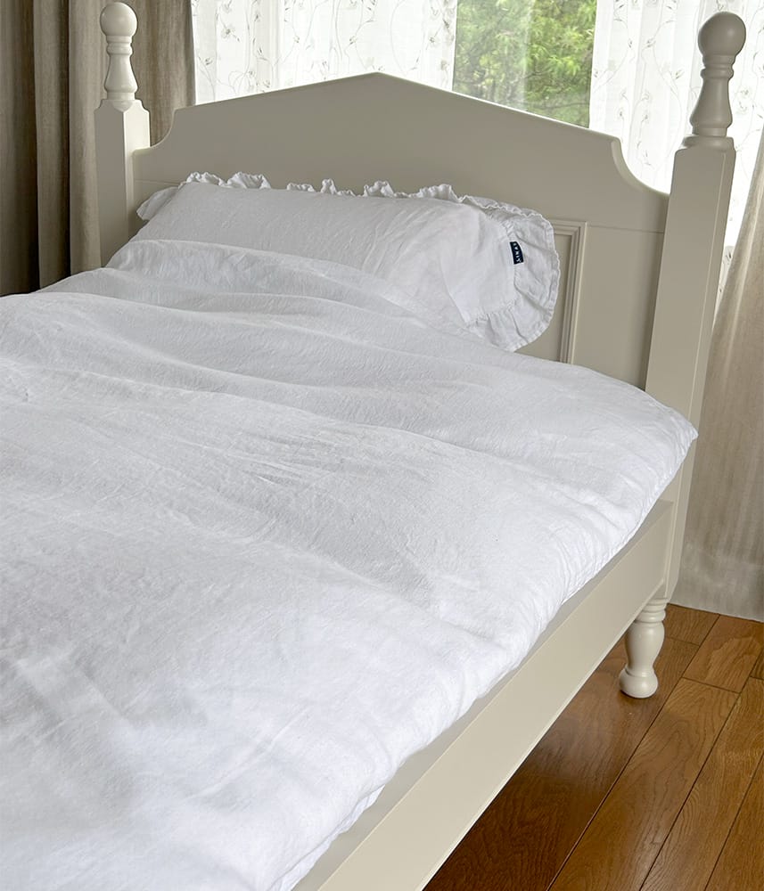 同シリーズのピローカバーと揃えてコーディネートすれば、ベッドルームに統一感が生まれ、より穏やかで上質な空間に。