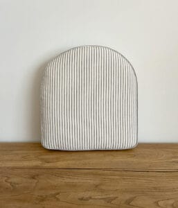 シート座面に適した、しっかり厚手生地。グレーのピンストライプがかわいいです。カーブ側にファスナーが付いていて、お洗濯お手入れが可能。