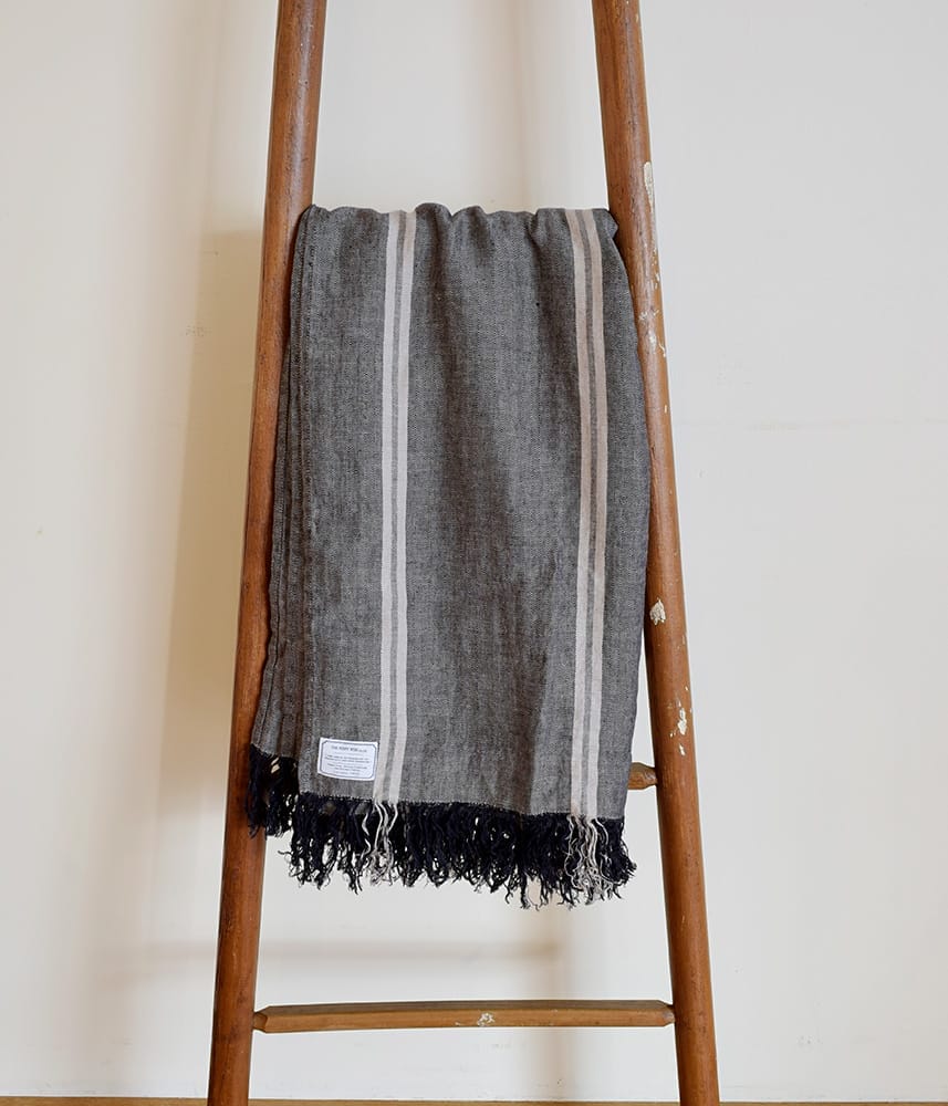 リネンブランケット・ベッドスプレッド【ブラックヘリンボーン】