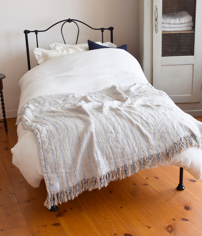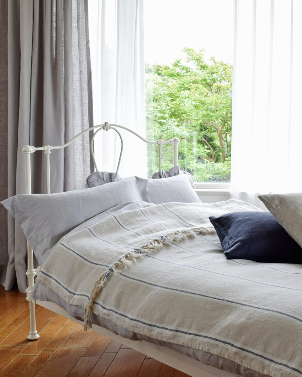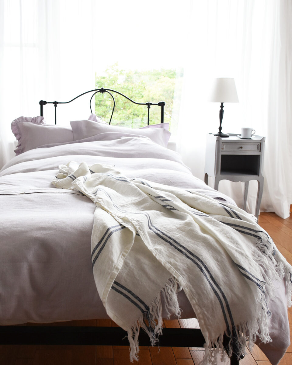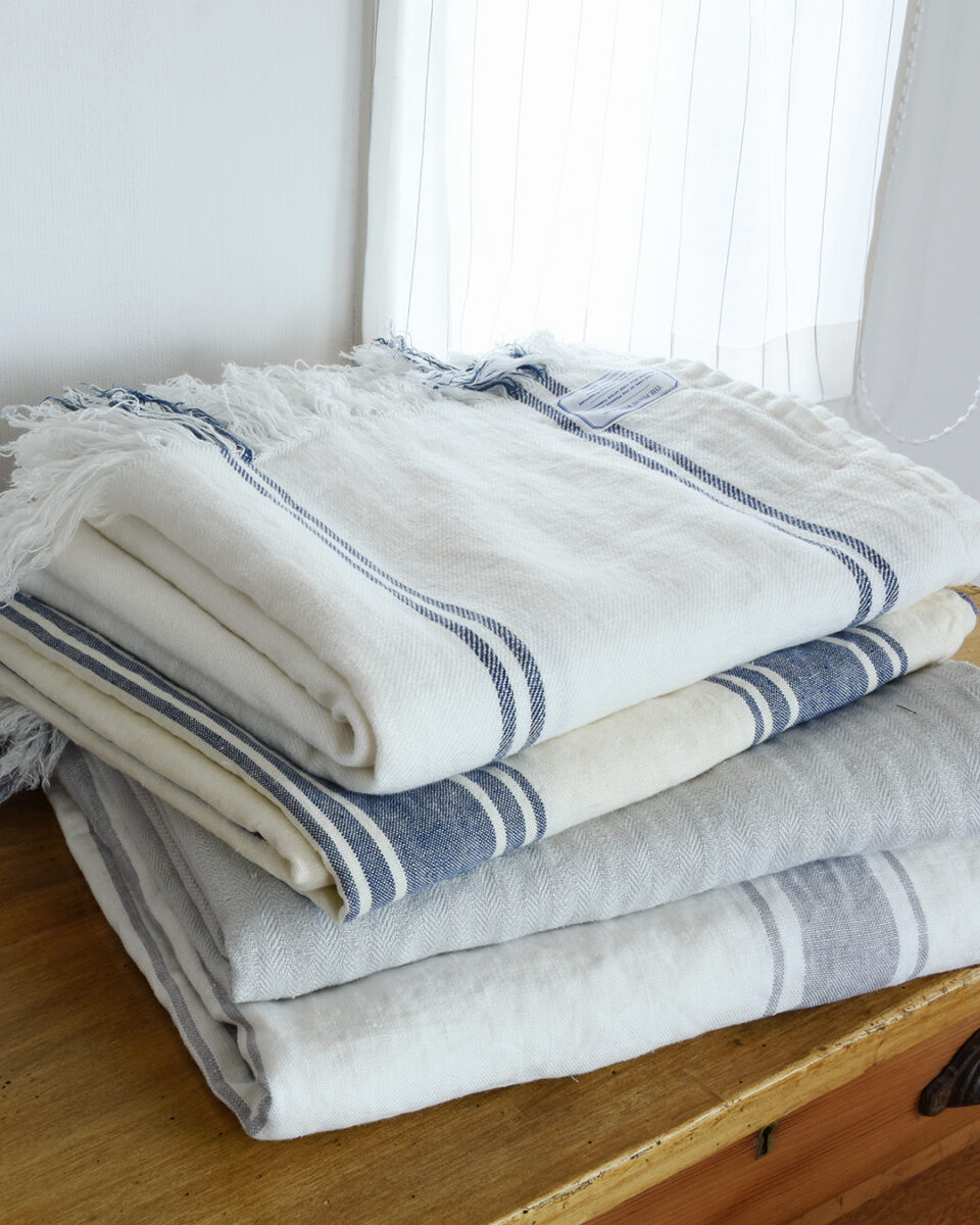 オンラインショップでは様々なバリエーションのブランケットをご用意しています。 リネンブランケット・ベッドスプレッド【マリン1】