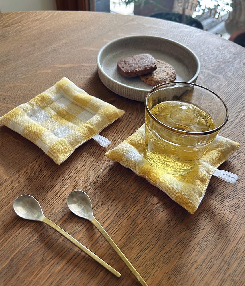 素材には、リトアニア製の上質なリネン100%を使用。 サイズはW11㎝×H11㎝、厚み2㎝。 春から初夏にかけての軽やかな空気の中で、 クッションコースターはこちらからご覧ください。 |