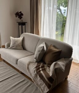 たとえば、いつものソファ。 ソファに掛けたブランケットも、冬ならではの存在です。 冬のインテリアは、変化を大きくする必要はありません。 何かを飾るよりも、素材に目を向ける。