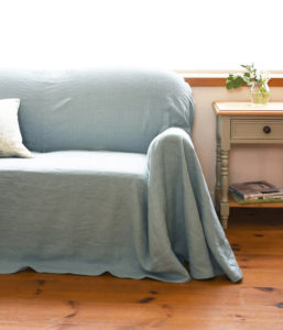 リネンは繊維に汚れが浸透しにくく、繊維自体に抗菌性があり優れています。シートと本体の間に生地を入れ込んで形を整えるので、裾の長さは長めにも短かめにもお好きな長さで調整ができます。