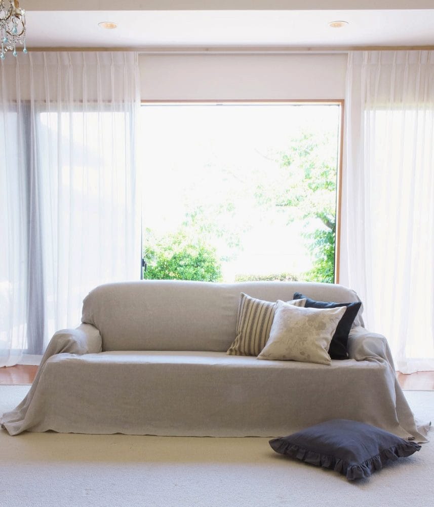 リネンは繊維に汚れが浸透しにくく、繊維自体に抗菌性があり優れています。シートと本体の間に生地を入れ込んで形を整えるので、裾の長さは長めにも短かめにもお好きな長さで調整ができます。