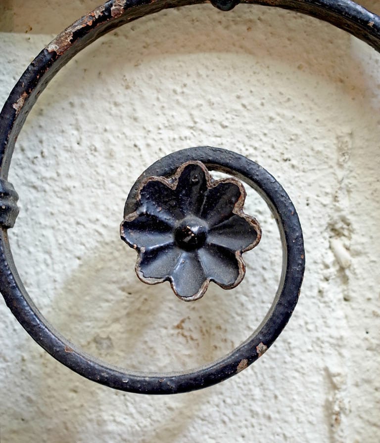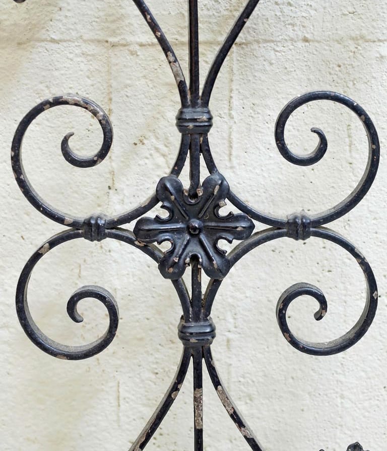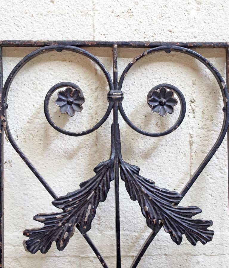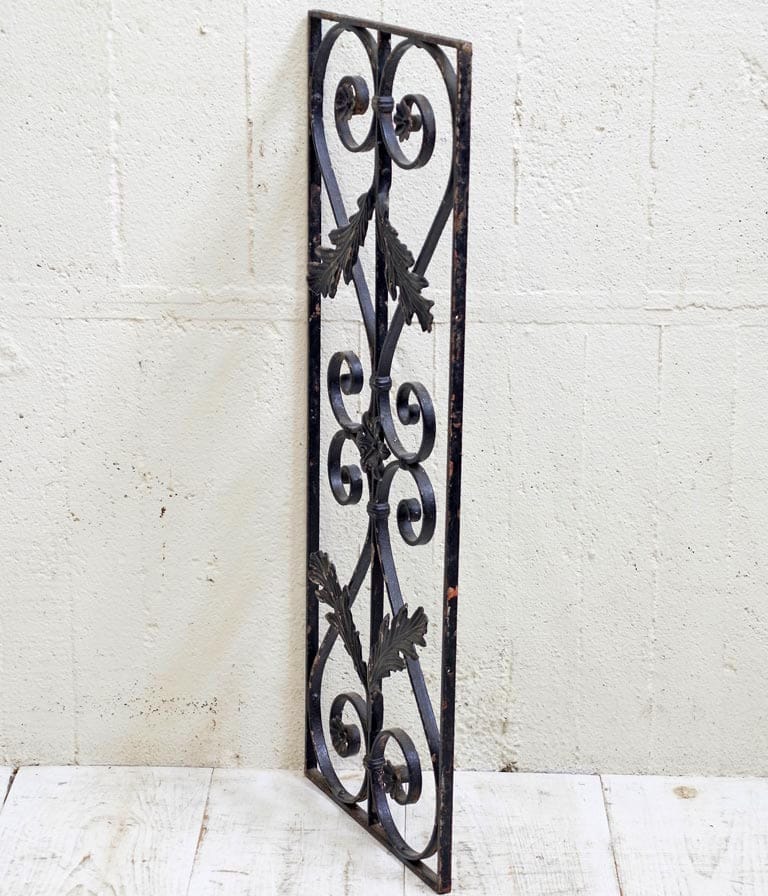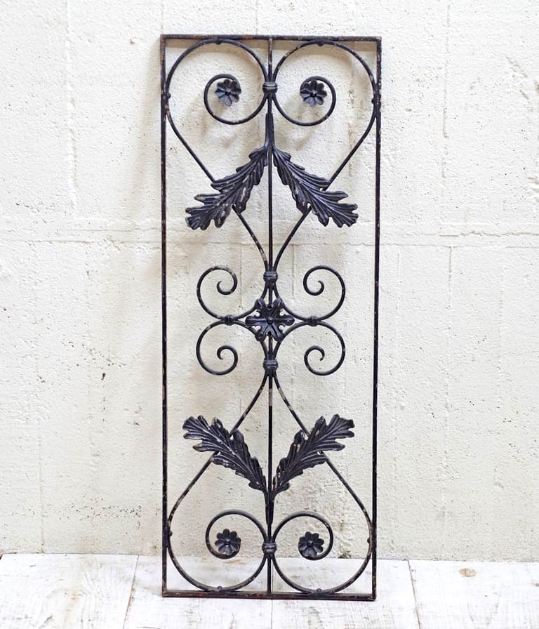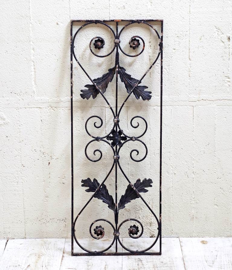 推定1930年代。窓格子として使用されていたアンティークキャスト(鋳物)アイアングリルです。ガーデンやお部屋で壁に立てかけたり、間仕切りに組み込ませてなどご使用方法は様々です。アンティークならではの経年変化によって所々塗装が剥がれシャビーな印象です。